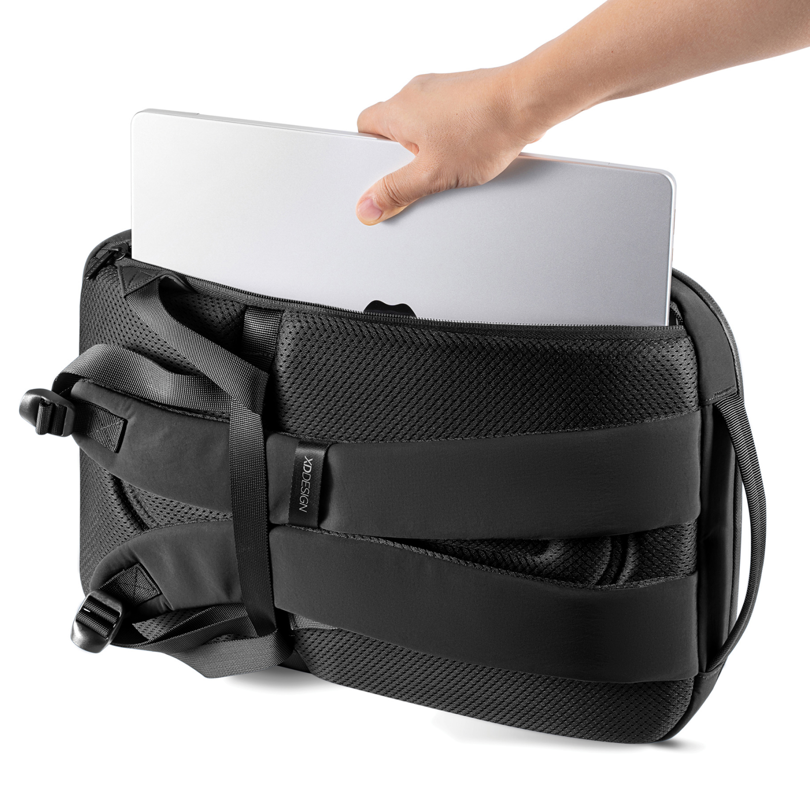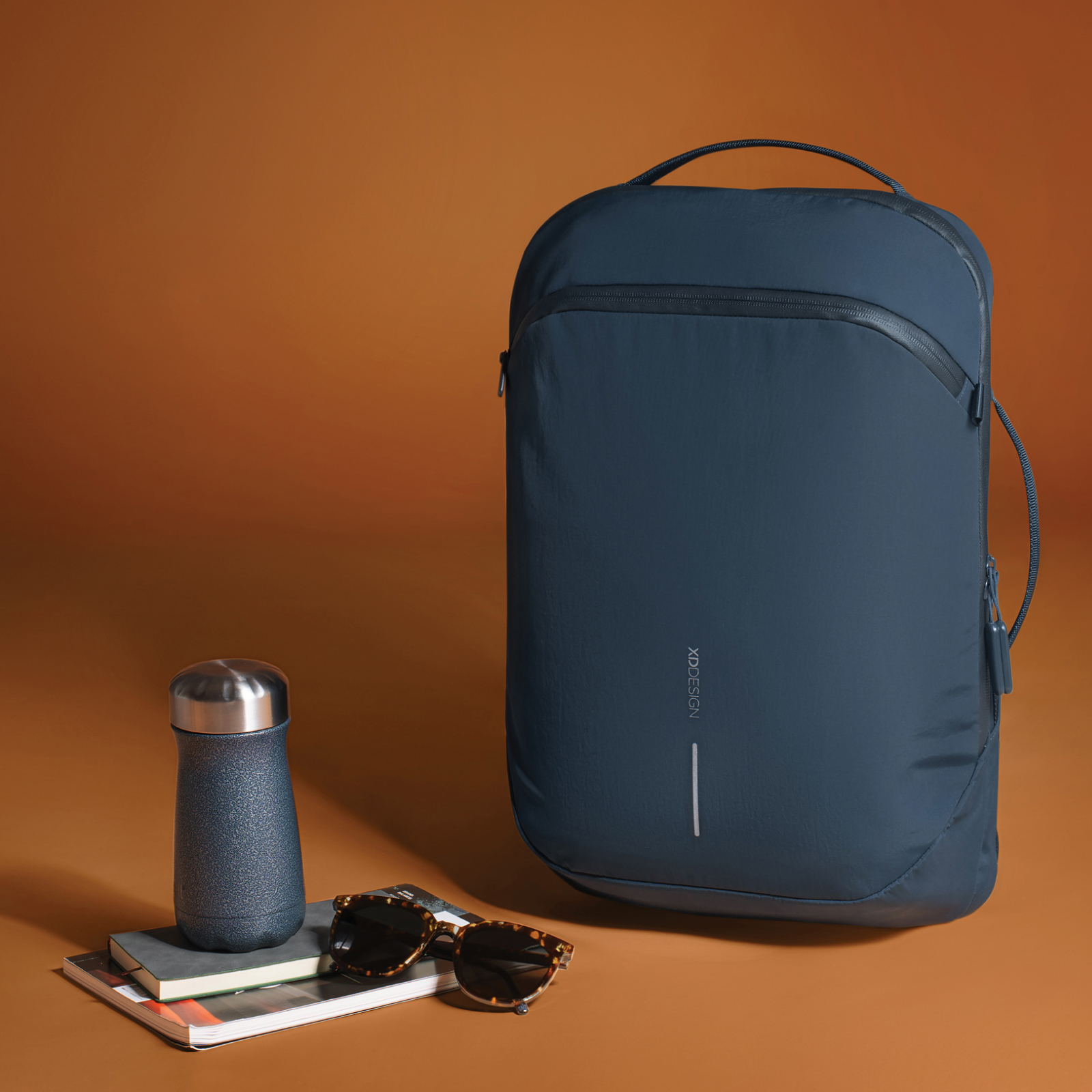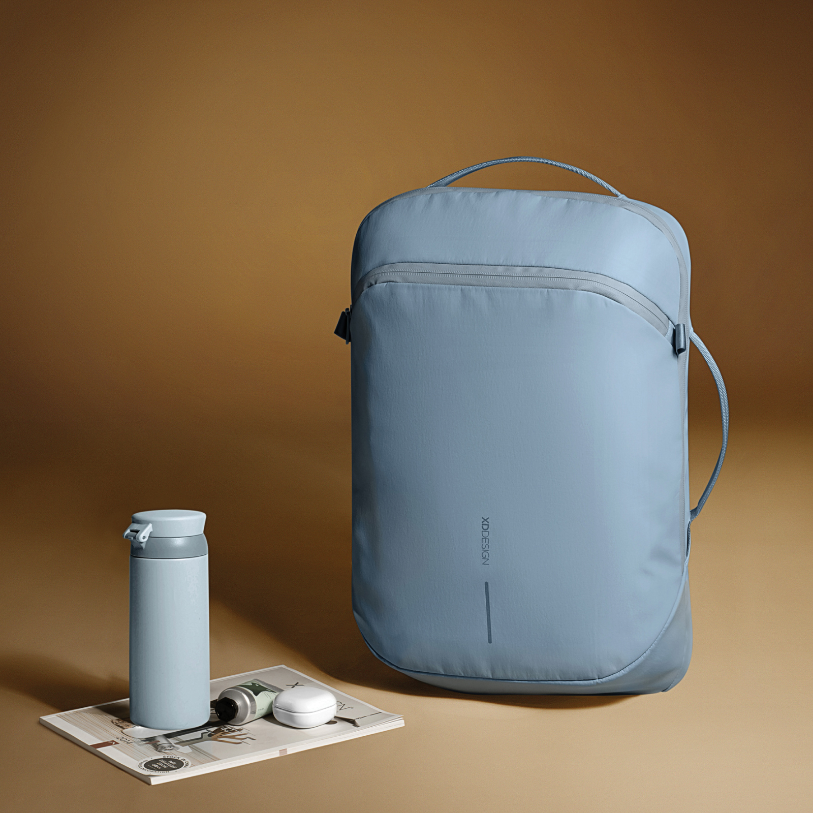 Рюкзак можно носить двумя способами: как классический рюкзак или как портфель — благодаря верхней и боковой ручкам. Объем 15 литров оптимален для всего, что нужно в течение дня: ноутбука, документов А4, аксессуаров и личных вещей. В поездках Bobby Air удобно закрепить на чемодане с помощью багажной лямки.
