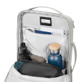 Внутреннее пространство рюкзака помогает аккуратно распределить все необходимое на каждый день. Для ноутбука предусмотрено защищенное отделение с быстрым боковым доступом — технику можно достать, не открывая основной отсек. Внутри главного отделения есть сетчатый карман на молнии для небольших гаджетов и аксессуаров, а также отдельный отсек для бутылки или термоса, который фиксирует их в вертикальном положении. Для трекера предусмотрена секретная ячейка за логотипом.