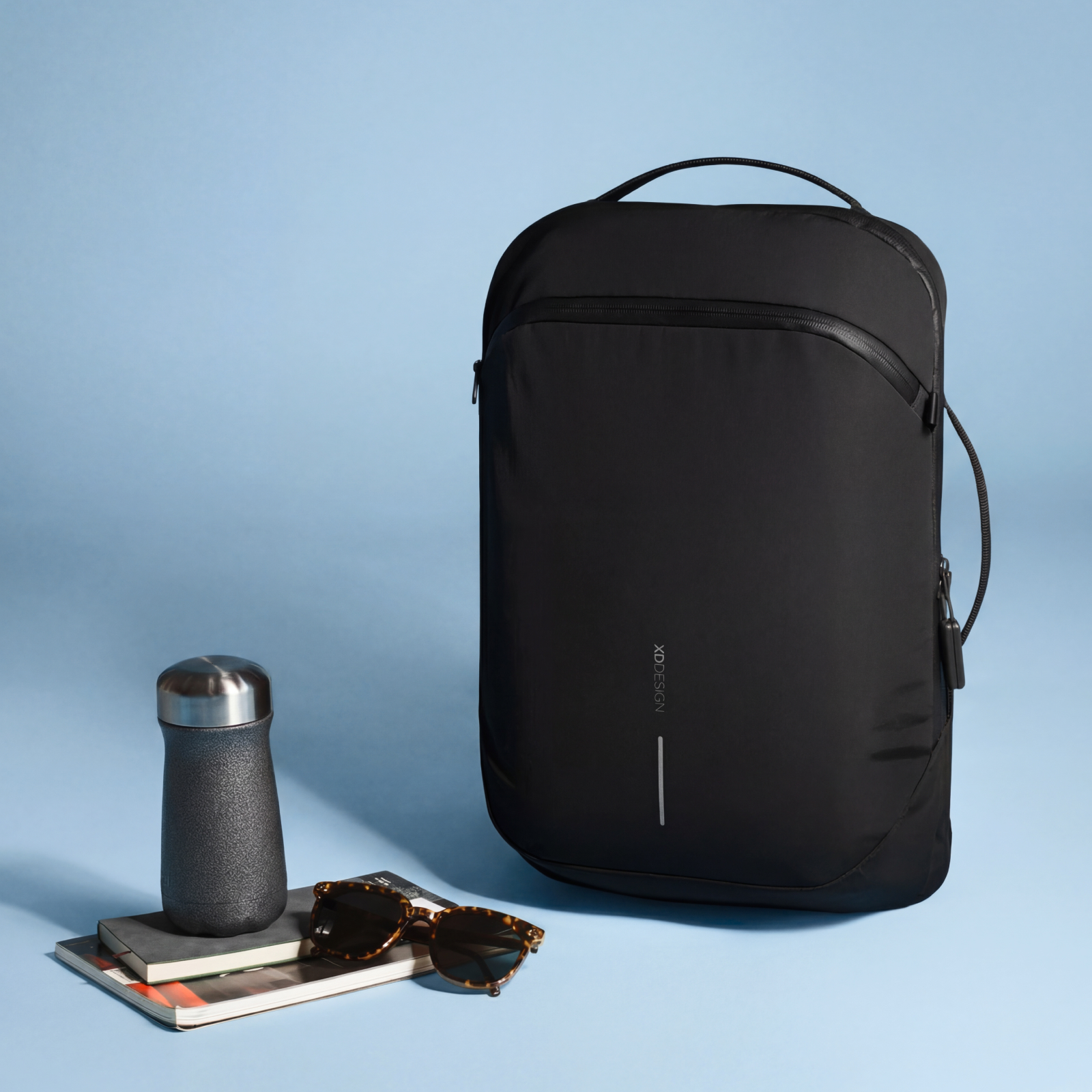 Рюкзак можно носить двумя способами: как классический рюкзак или как портфель — благодаря верхней и боковой ручкам. Объем 15 литров оптимален для всего, что нужно в течение дня: ноутбука, документов А4, аксессуаров и личных вещей. В поездках Bobby Air удобно закрепить на чемодане с помощью багажной лямки.