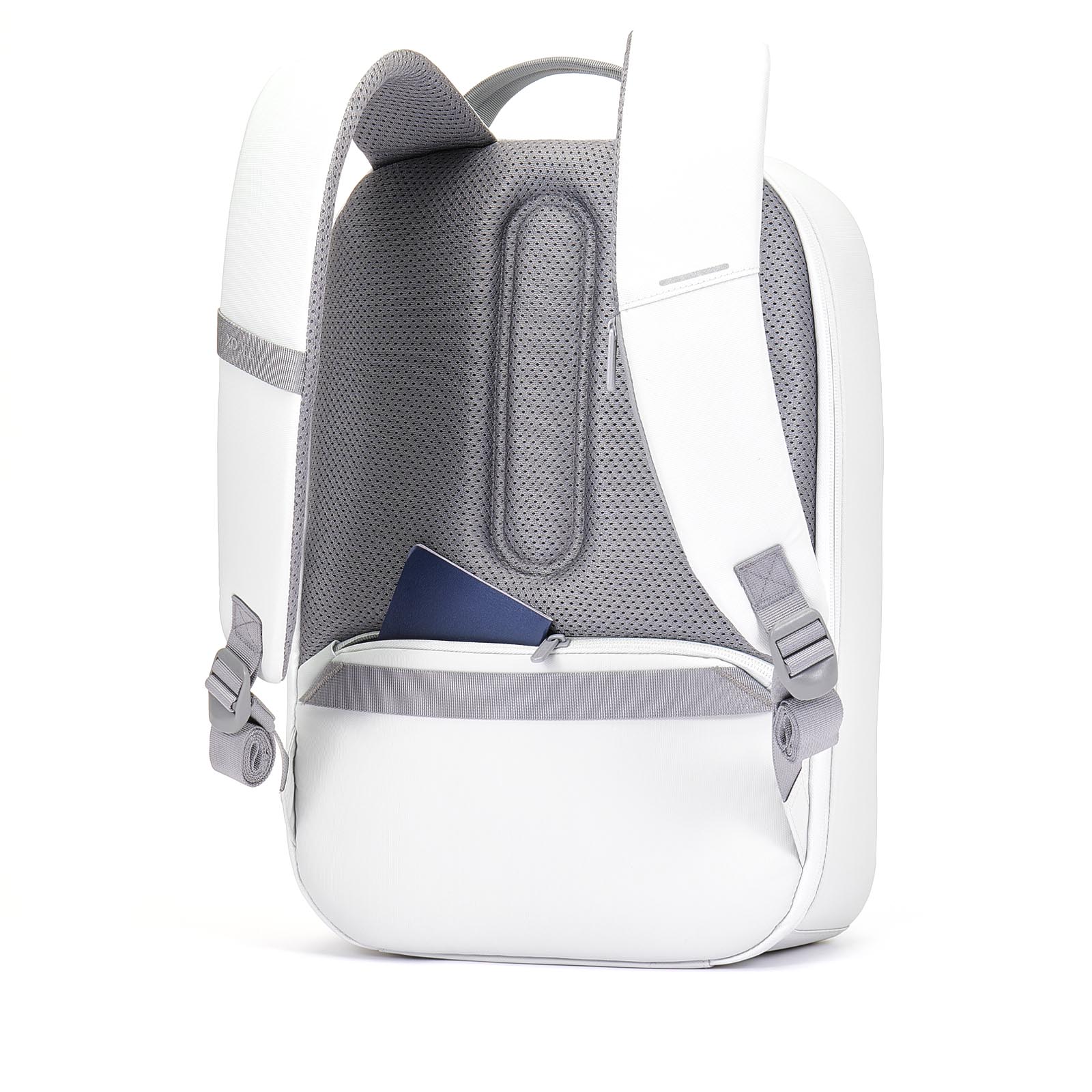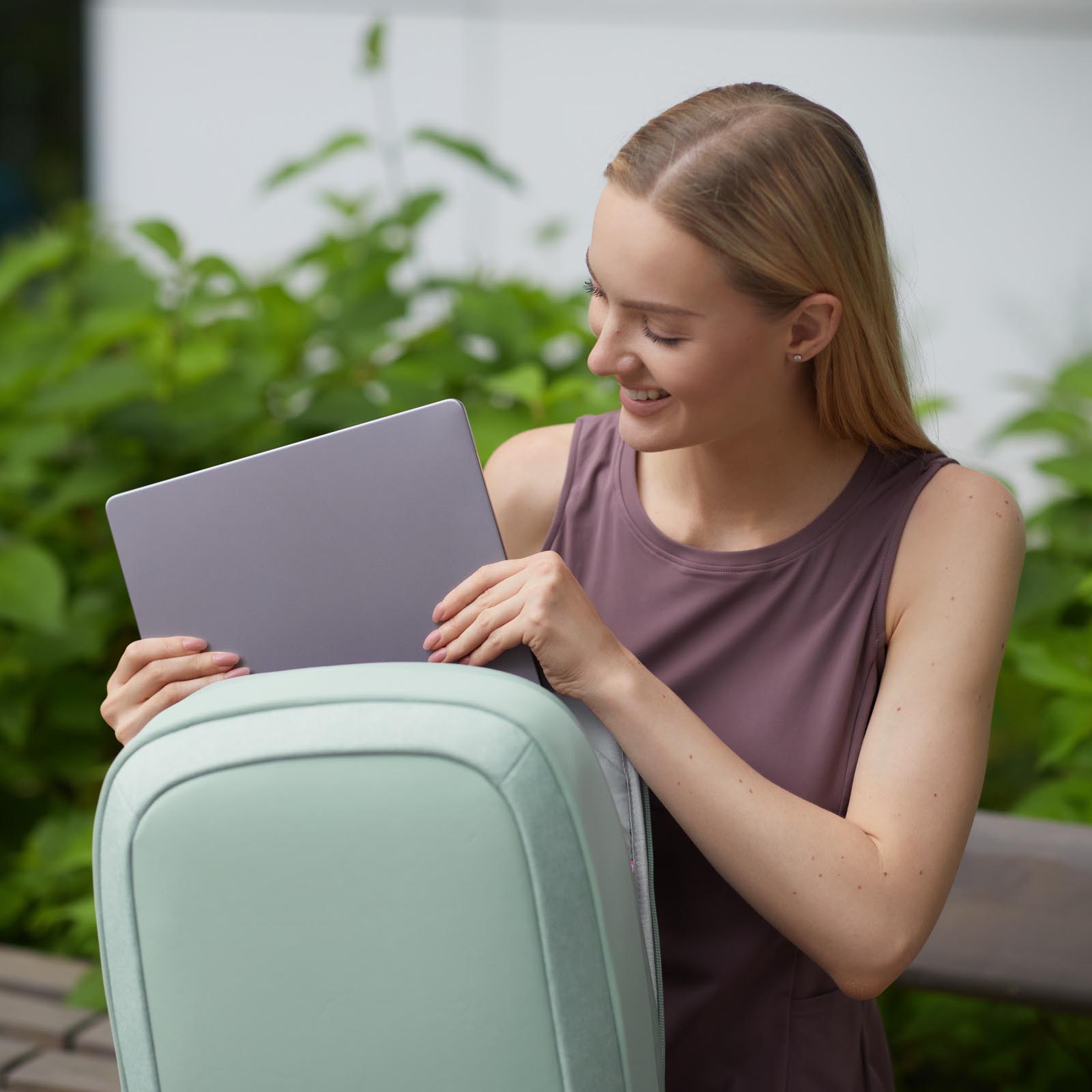 На спинке — карман с RFID-защитой. Смело складывайте туда самое важное — паспорт, билеты и банковские карточки. Пока рюкзак на спине, доступ к этому отделению есть только у вас.