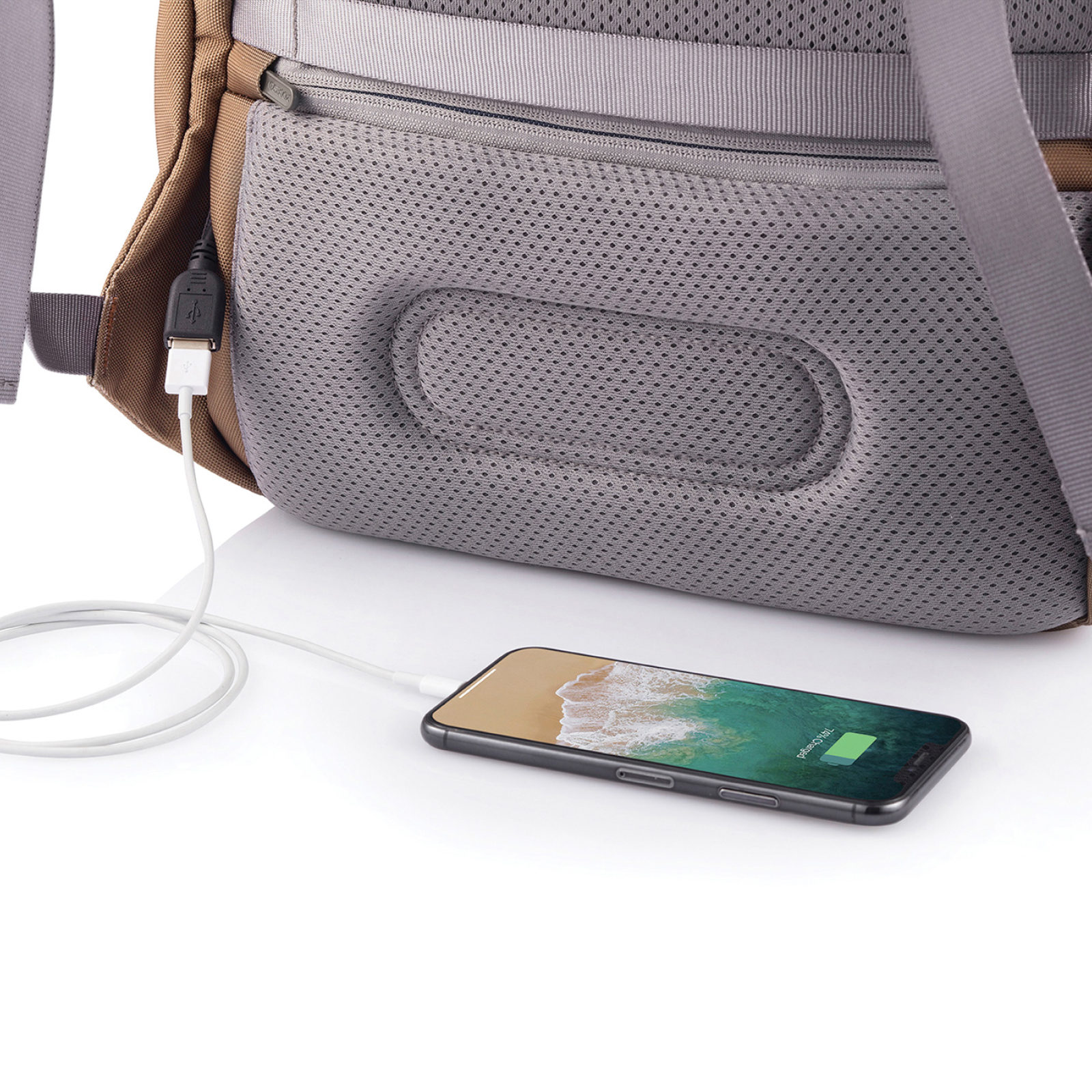 Во время путешествия гаджеты имеют свойство разряжаться. Положите в специальный карман внутри Bobby Soft повербанк, подключите его к USB кабелю. Снаружи, в районе правой лямки, находится выход USB, к которому можно подключить смартфон и заряжать прямо на ходу.