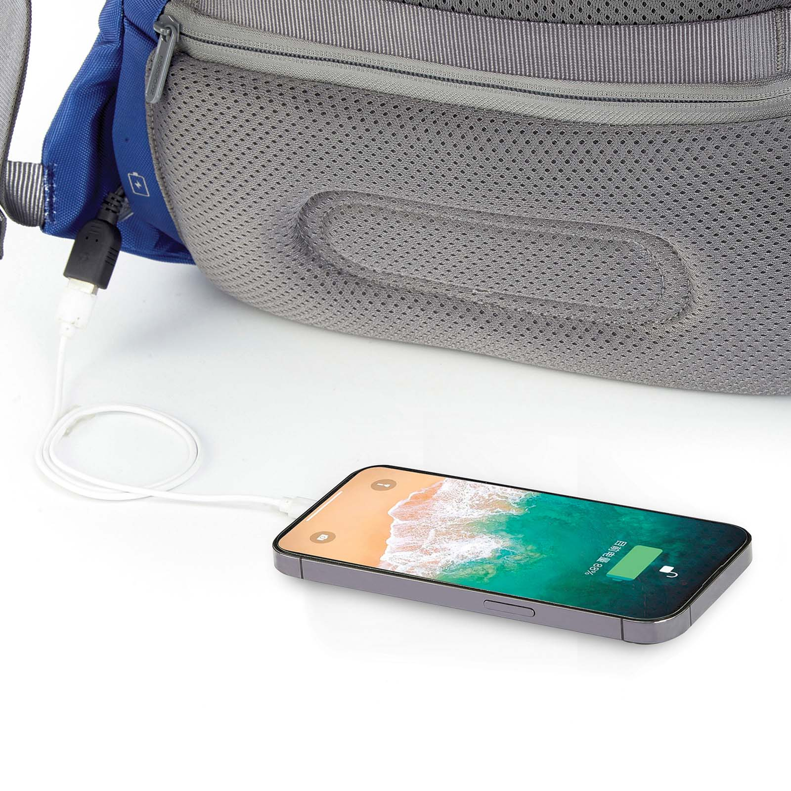 Во время путешествия гаджеты имеют свойство разряжаться. Положите в специальный карман внутри Bobby Soft повербанк, подключите его к USB кабелю. Снаружи, в районе правой лямки, находится выход USB, к которому можно подключить смартфон и заряжать прямо на ходу.