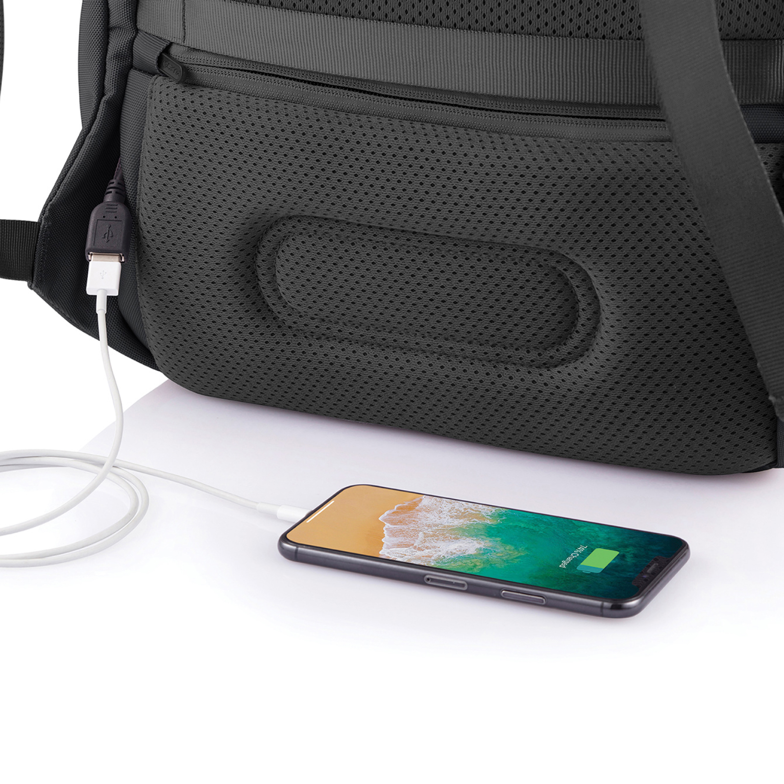 Во время путешествия гаджеты имеют свойство разряжаться. Положите в специальный карман внутри Bobby Soft повербанк, подключите его к USB кабелю. Снаружи, в районе правой лямки, находится выход USB, к которому можно подключить смартфон и заряжать прямо на ходу.