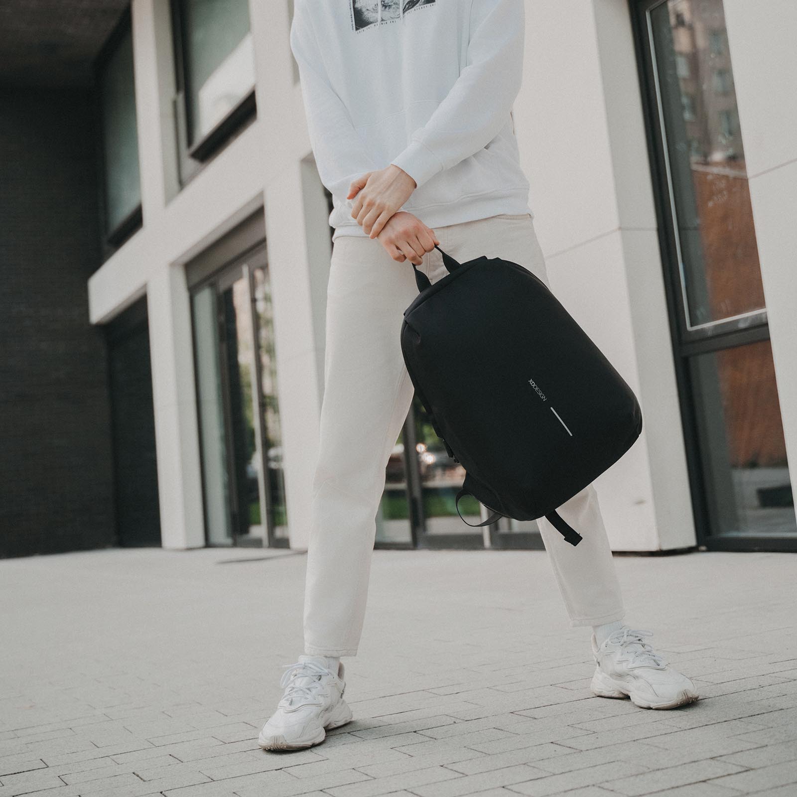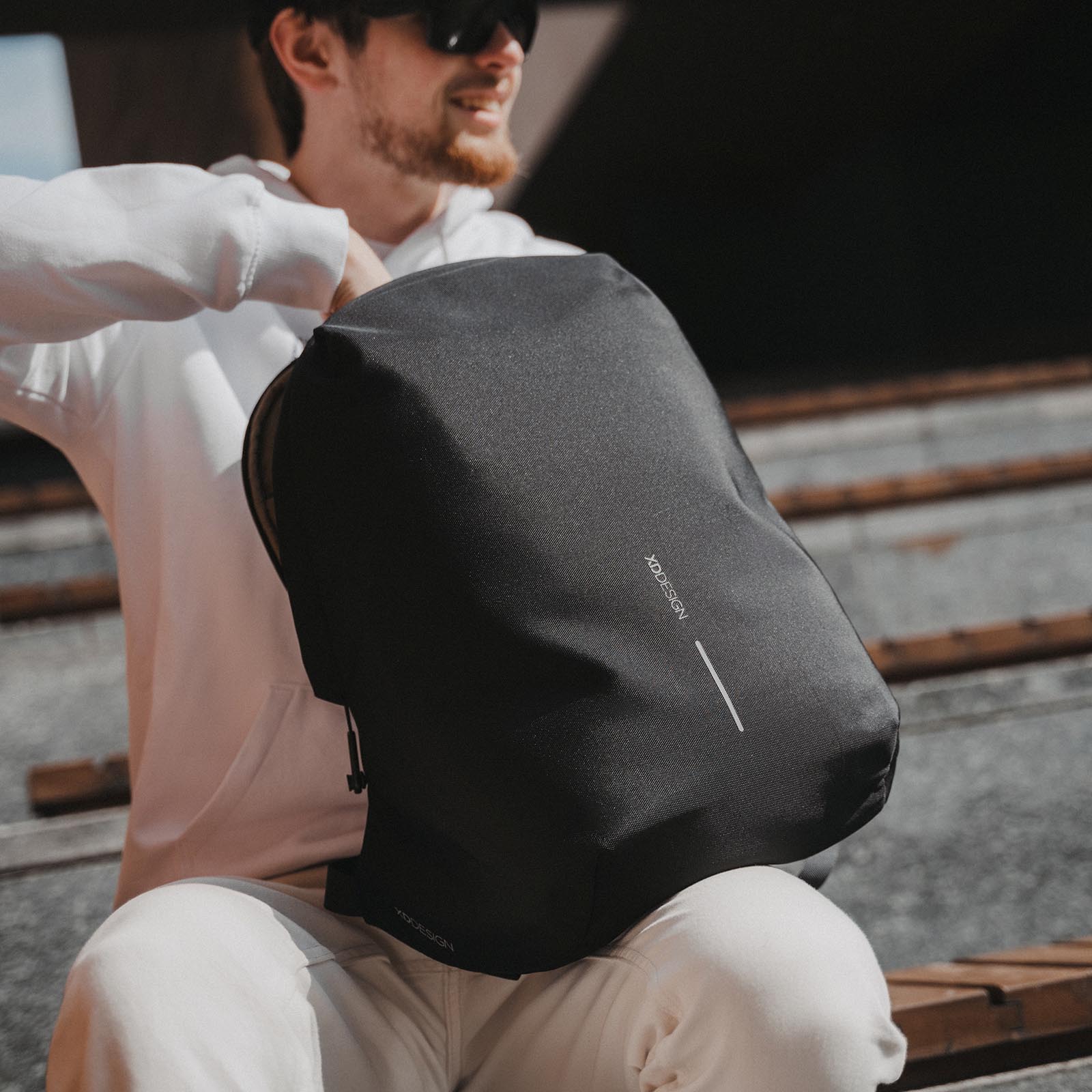 Особая конструкция Bobby Soft выделяет эту модель в серии противокражных рюкзаков популярного бренда XD Design. Она получила регулируемый с 13 до 16 литров объем, что отлично подходит для повседневного использования. На работу, учебу или тренировку ― Bobby Soft удовлетворяет всем запросом городского жителя. А во время путешествия его можно закрепить на чемодан предназначенной для этого лямкой.
