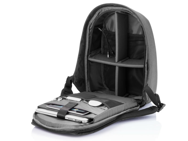 Помимо всяческих фишек, главный козырь XD Design Bobby Tech — интегрированные солнечные панели и встроенный модуль беспроводной зарядки. Аккуратно размещенные на фронтальной стороне, они способны легко подпитывать ваш смартфон на ходу. И провода больше не нужны. Кстати, для зарядки гаджетов предусмотрены порты USB и USB Type-C.