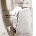 Содержимое защищено надежными молниями, а ткань рюкзака — водоотталкивающая. За сохранность электронных данных отвечает карман с RFID-защитой.