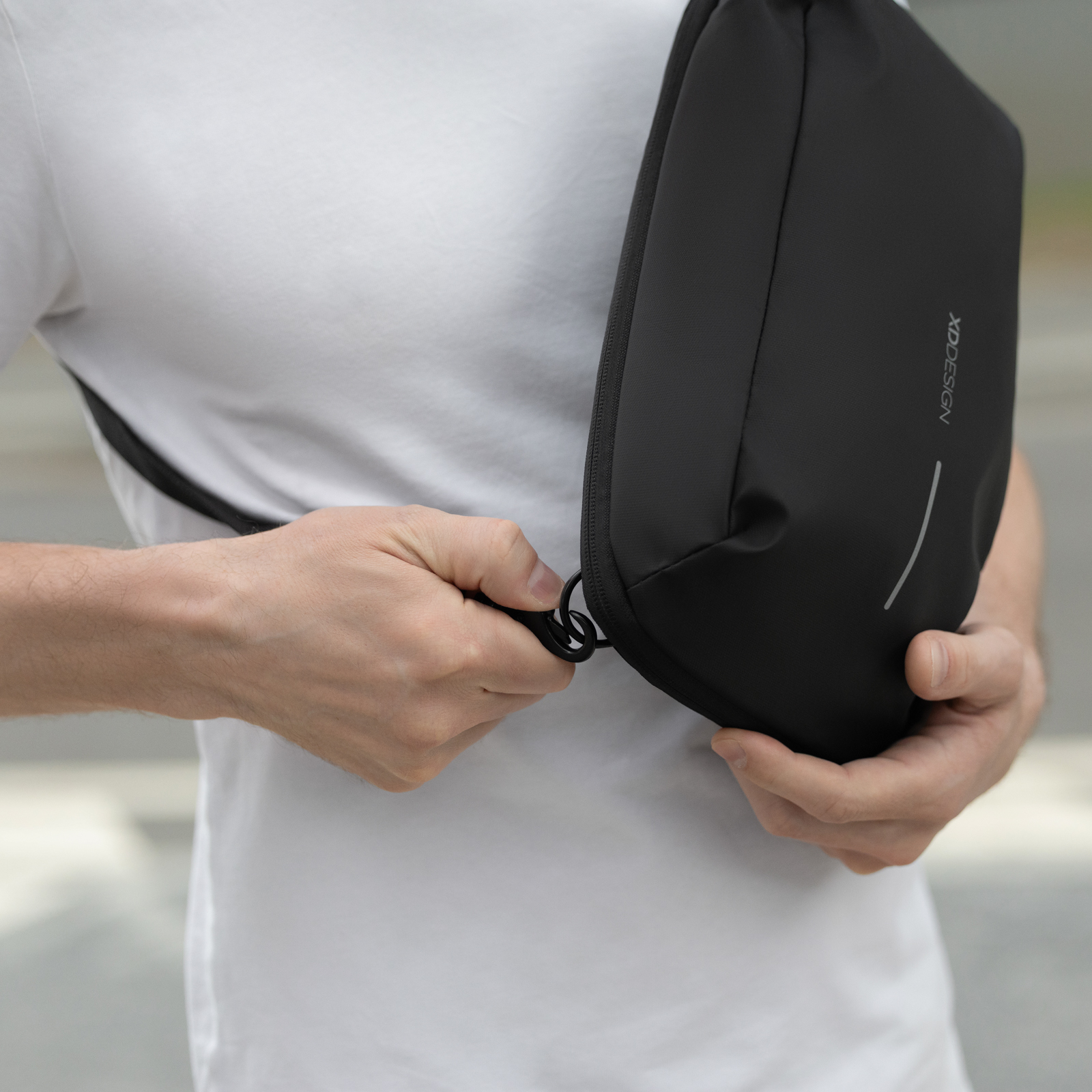 У рюкзака Urban Sling одна лямка. Его можно носить как на одном плече, так и через плечо — на спине или на груди. Для лямки предусмотрено два варианта крепления, вы сможете настроить аксессуар под себя.