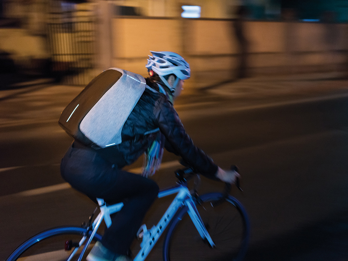 Чтобы защитить рюкзак от сдавливания и попыток разрезать материал, разработчики применили эффект многослойности. Для создания прочной конструкции использовалось пять слоев из разного типа материалов. Верхний слой — это стильная ткань из полиэстера. Ткань, из которой изготовлены боковые и передняя часть рюкзака, влагонепроницаемая. За ней идет слой мягкого материала, защищающего от ударов, а после — несколько слоев ткани, обеспечивающие дополнительную надежность. Основную защиту от надрезов гарантирует вставка листа из пластика перед подкладкой.