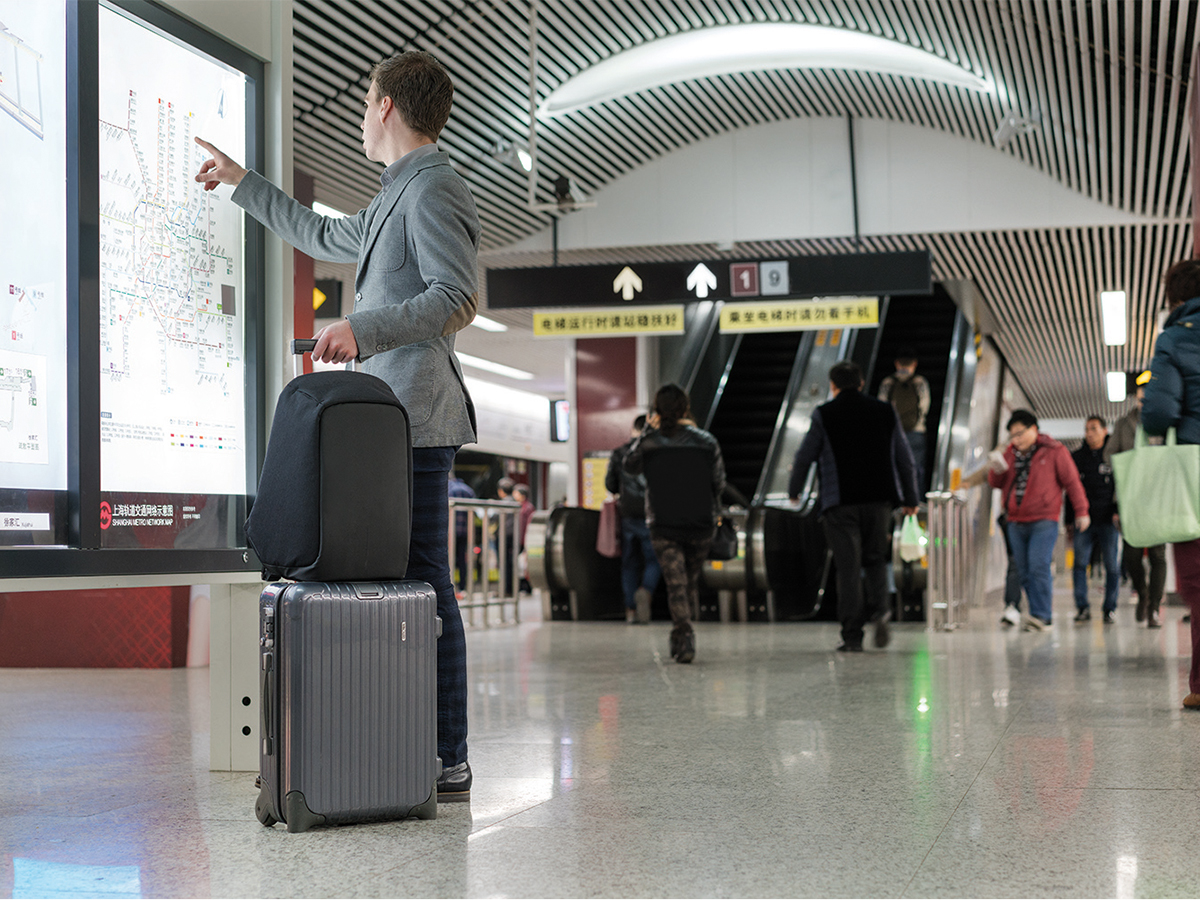 Путешествуйте себе на радость! Благодаря продуманной лямке на спинке рюкзака, его очень удобно крепить на ручку чемодана. Подсоедините внешний аккумулятор внутри рюкзака и заряжайте ваши гаджеты во время поездки.